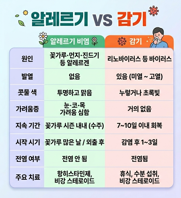 봄철 알레르기와 감기 증상 비교 제대로 이해하고 구별하는 방법을 소개합니다. 헷갈리기 쉬운 증상의 차이와 관리법을 정리했습니다.