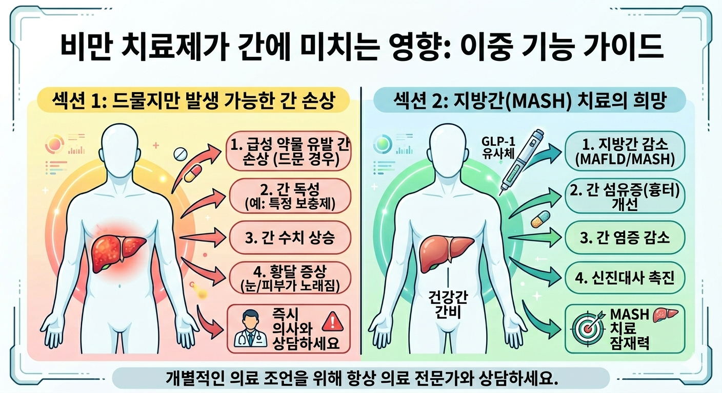| 비만치료제는 간에 위험한가요? | 개인 상태에 따라 다르지만 간 질환이 있다면 주의가 필요합니다. |