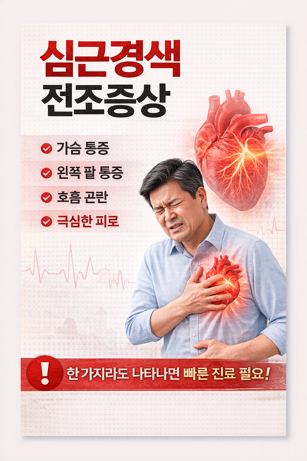 | 50대이상이라면 꼭 알아야할 심근경색 전조증상 놓치면 위험한 초기신호 5가지 (0) | 2026.03.12 |